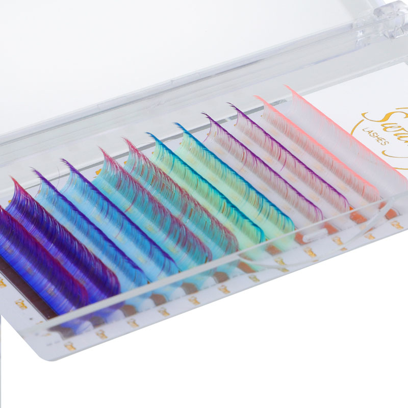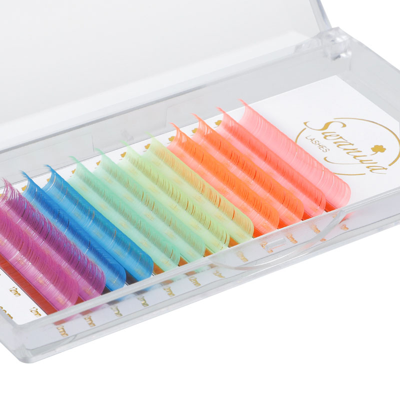 As extensións de pestanas de colorido de Swaniya teñen cor ombre (Ombre azul, ombre vermello, ombre rosa branco, etc.), cor normal (vermello, rosa, amarelo, branco, verde, azul, púrpura, etc.), cor de neón.