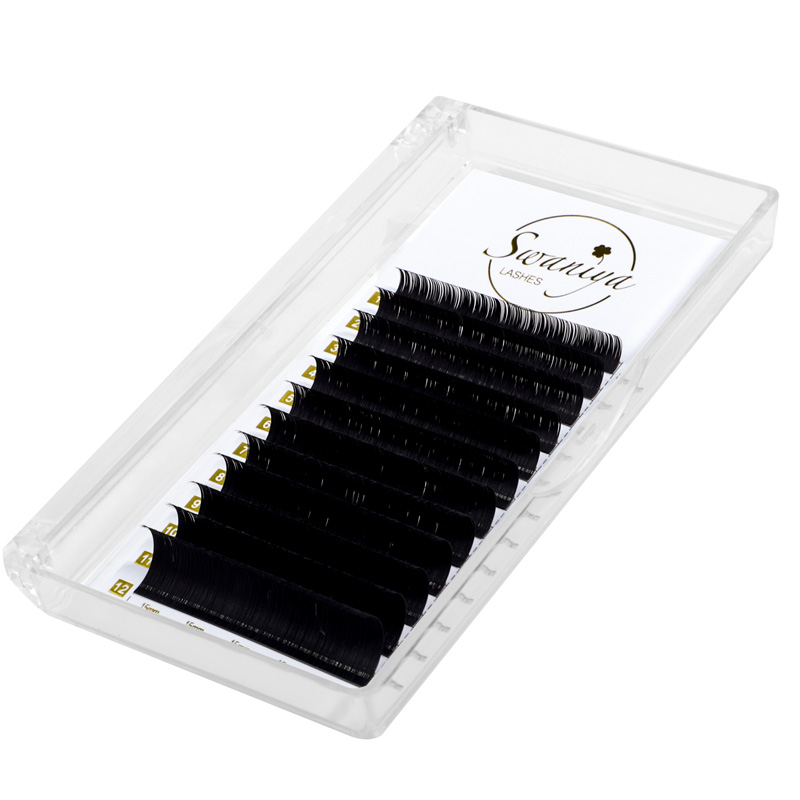 As extensións de pestanas clásicas de Swaniya presentan unha cor negra mate sen ton azul, o que as fai perfectas para crear conxuntos clásicos de pestanas. A cor negra profunda axuda a acentuar a beleza natural dos ollos, facéndoos parecer máis grandes, máis brillantes e fascinantes.