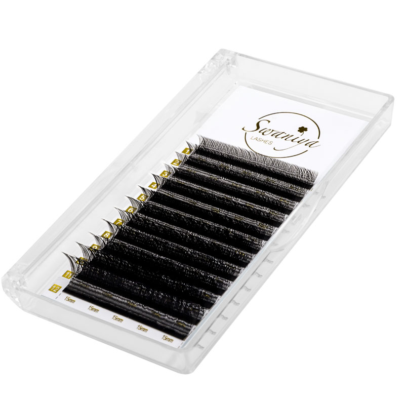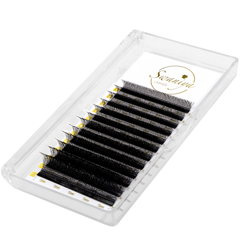 As extensións de pestanas Swaniya 3D W son ideais para un aspecto sutil pero mellorado. A forma W crea unha curva natural que lle proporciona ás pestanas un ascensor suave, mentres que a dimensión engadida engade profundidade e definición.